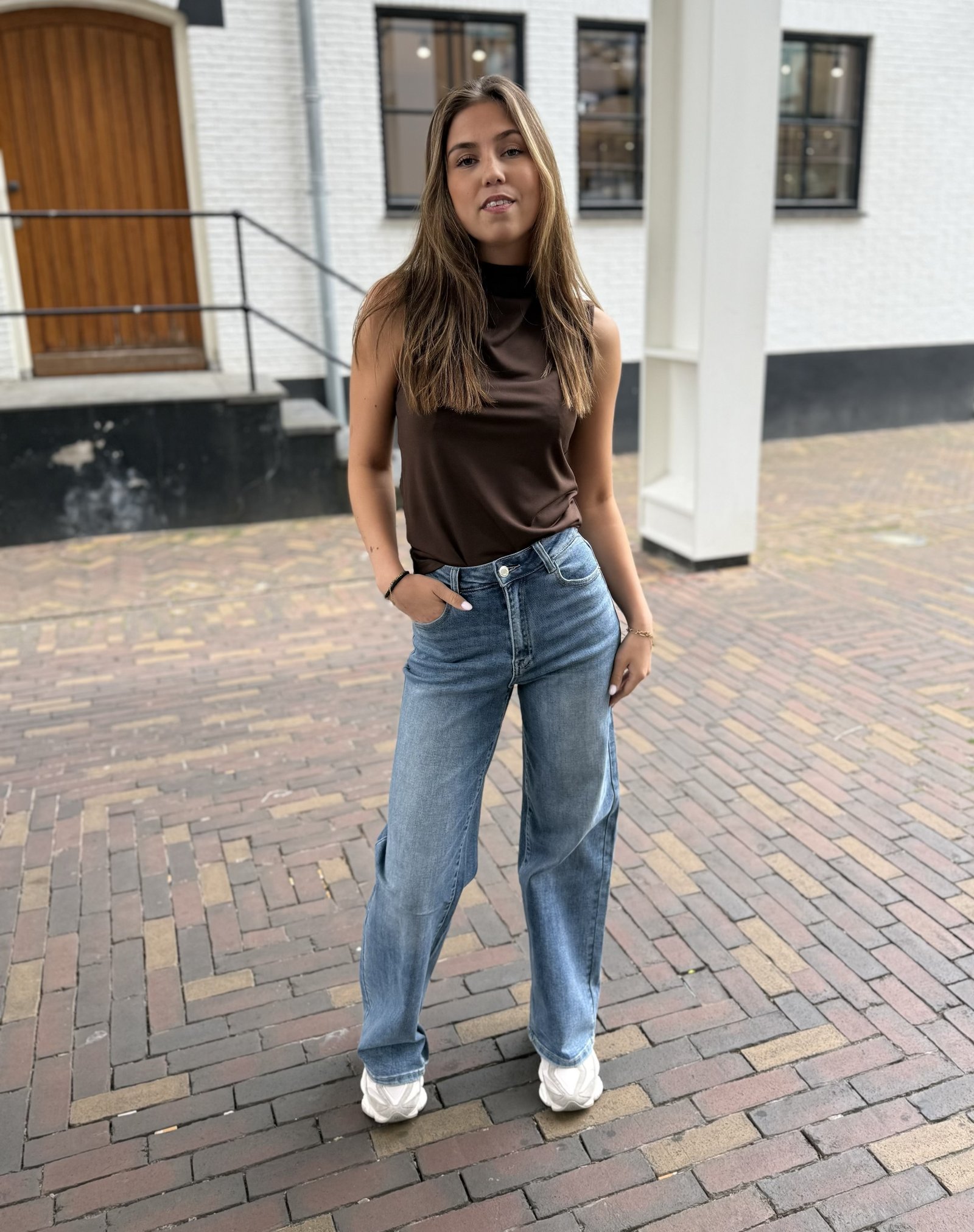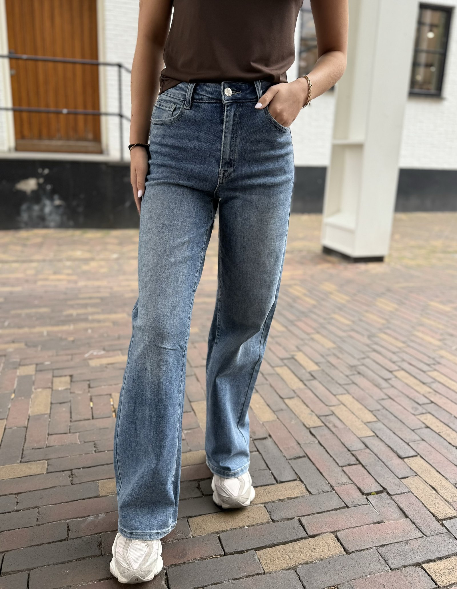 Het model heeft een hoge taille en rechte pijpen die iets losser vallen, waardoor je die typische dad fit krijgt die niet alleen trendy is, maar ook super comfortabel draagt. Combineer met een basic top voor een minimal everyday look of met een blouse en statement sieraden voor een meer dressed up vibe.