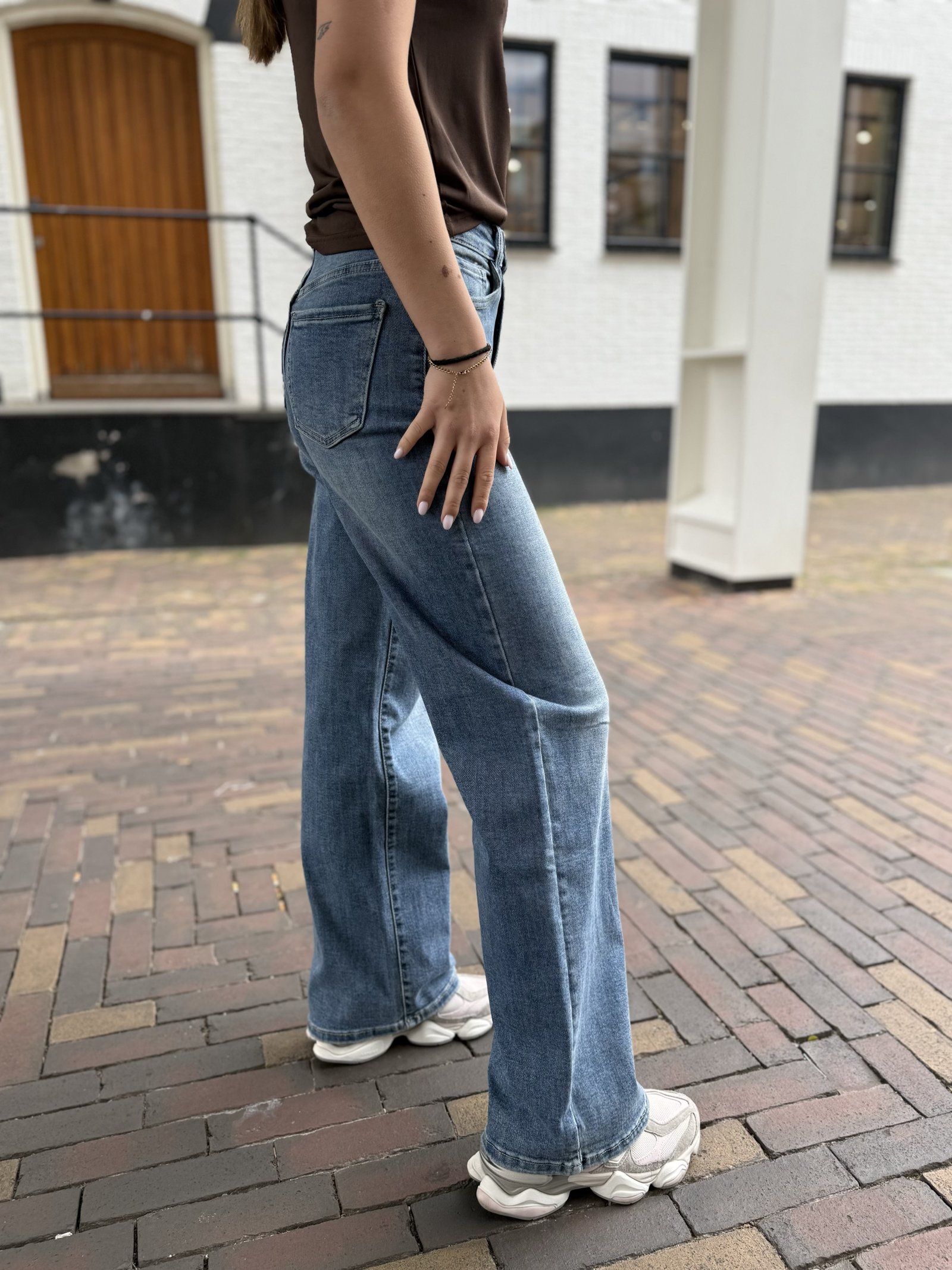 Deze donkerblauwe dad fit is een echte denim essential. Tijdloos, veelzijdig en easy to style – precies zo’n jeans waar je altijd weer naar teruggrijpt.