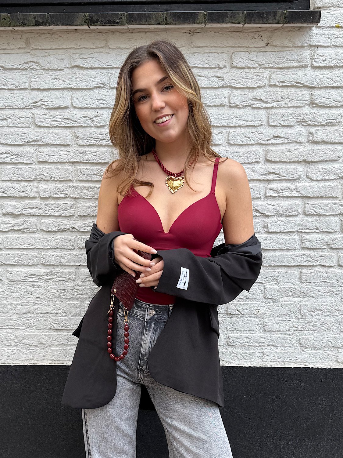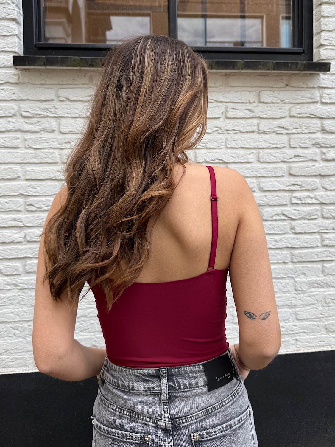 Dankzij de verstelbare bandjes bepaal je zelf de perfecte fit, en de zachte, stretchy stof voelt aan als een tweede huid. Draag ‘m onder een blazer, met een jeans of gewoon solo voor that confident, snatched look.