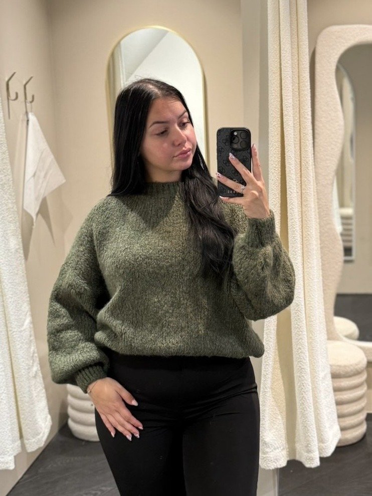 Khaki gebreide trui LUMI