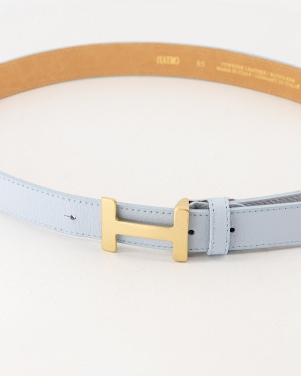 De Hera riem is gemaakt van genuine leer en is 3 cm breed. De riem heeft een goudkleurige gesp en is verkrijgbaar in de maten 85, 95 en 105. De riem is in te korten door middel van een schroef op de kop.