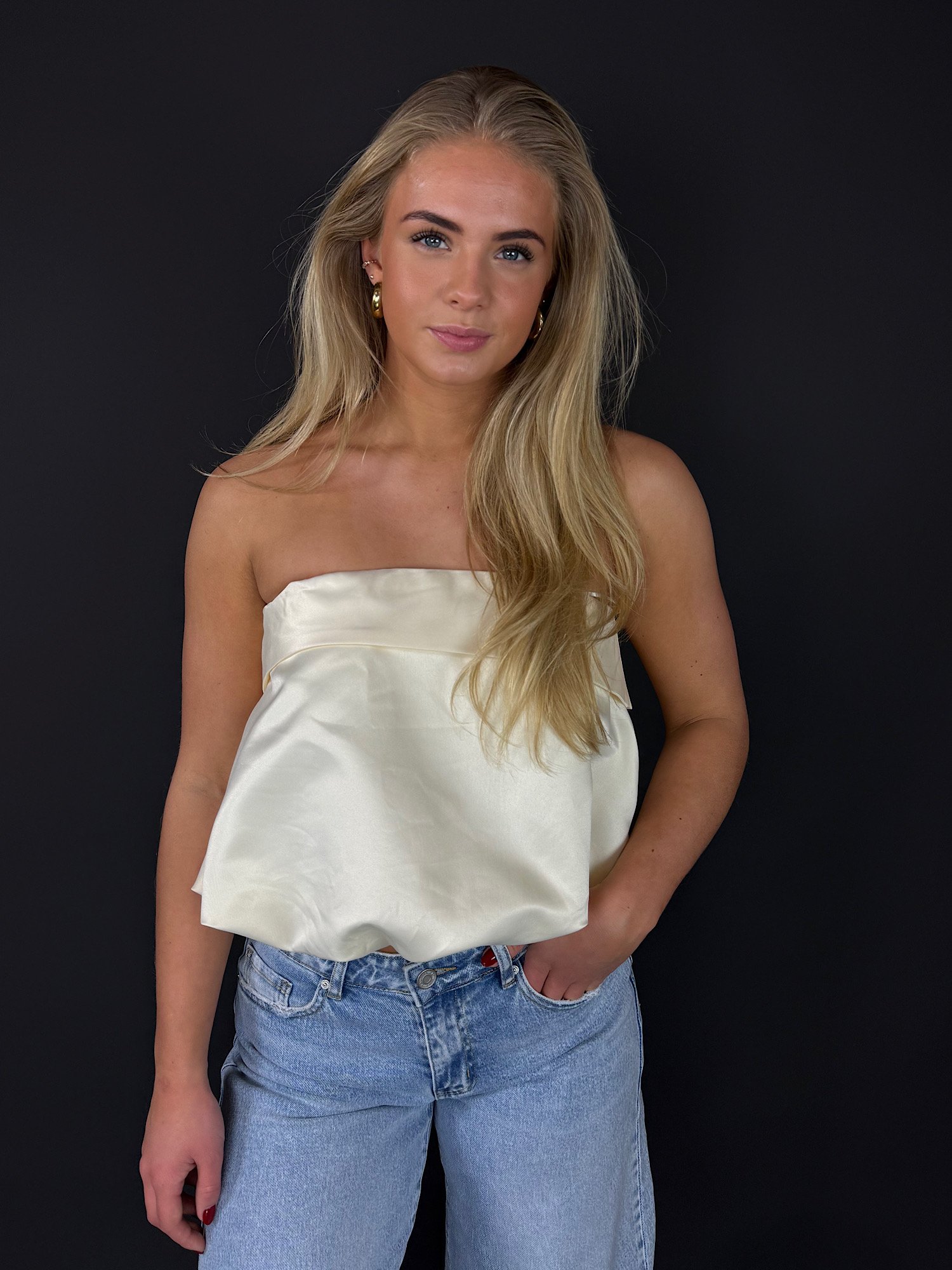 Say hello to your new statement top. De Poppy Top is een bandeau model met een speelse ballon fit en een luxe satin look stof die meteen die elevated vibe geeft. Minimalistisch, maar absoluut niet saai. Dit is zo’n top die je outfit in één klap af maakt.