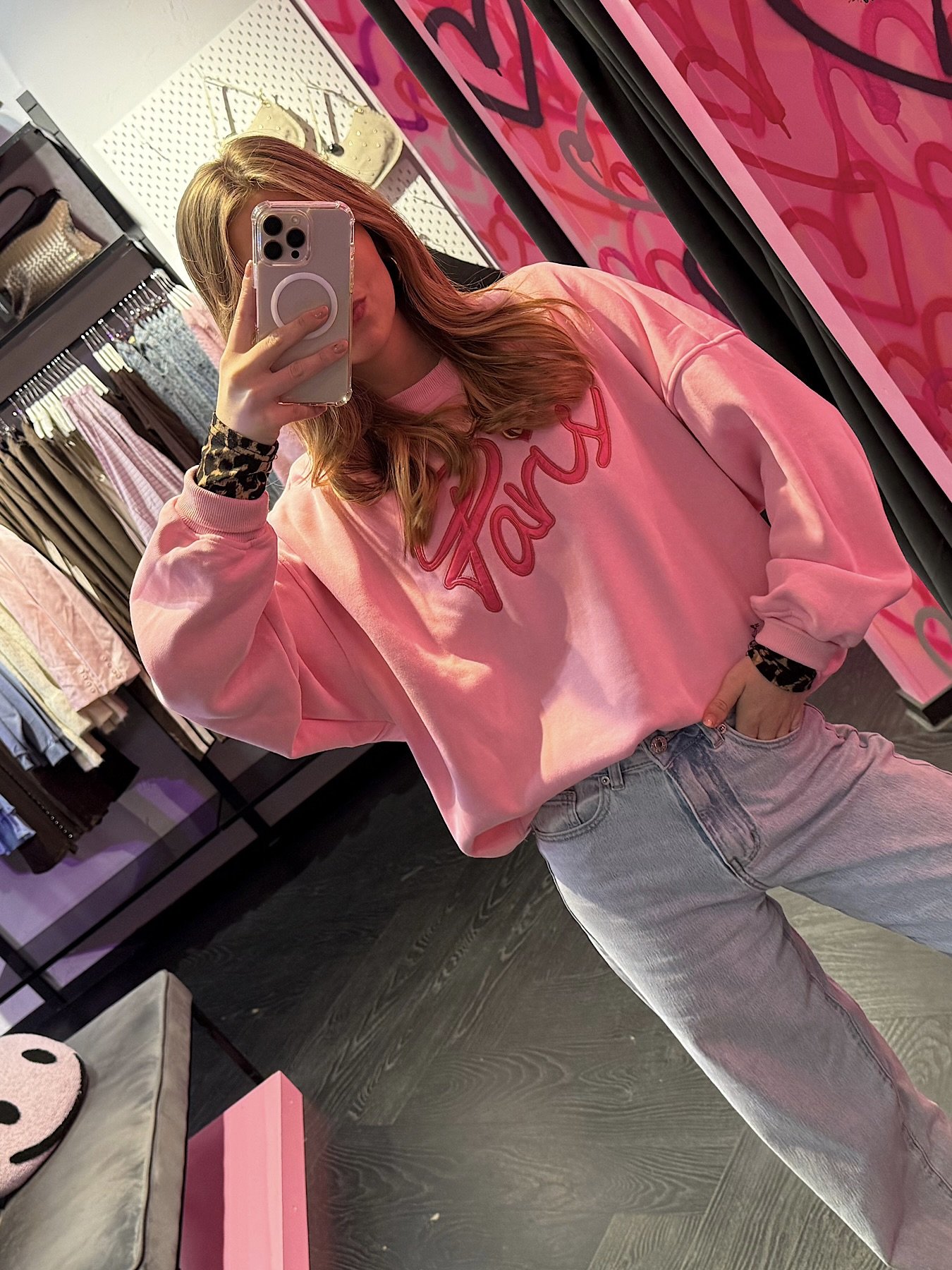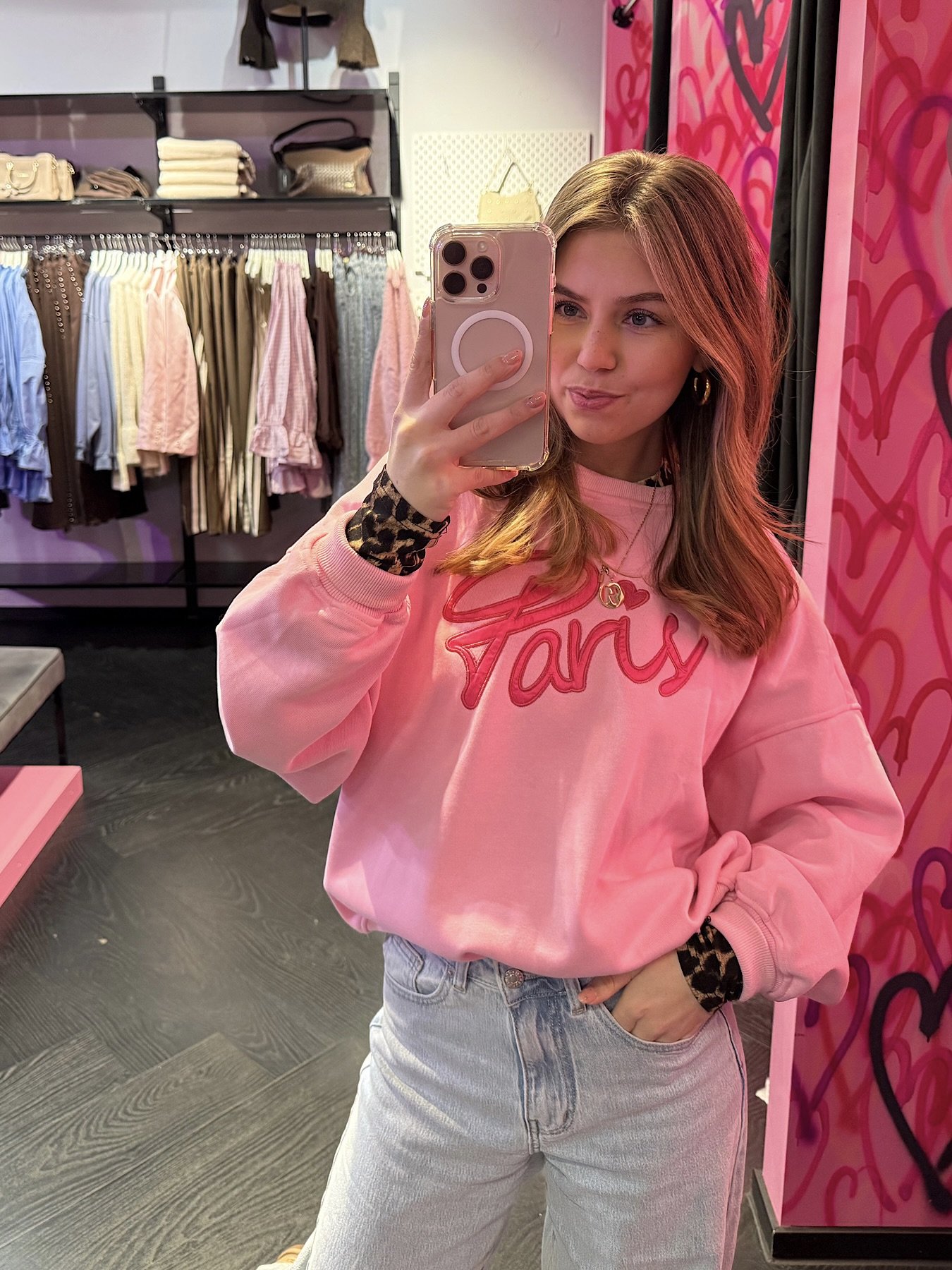 Sweater met fleece Paris – roze
