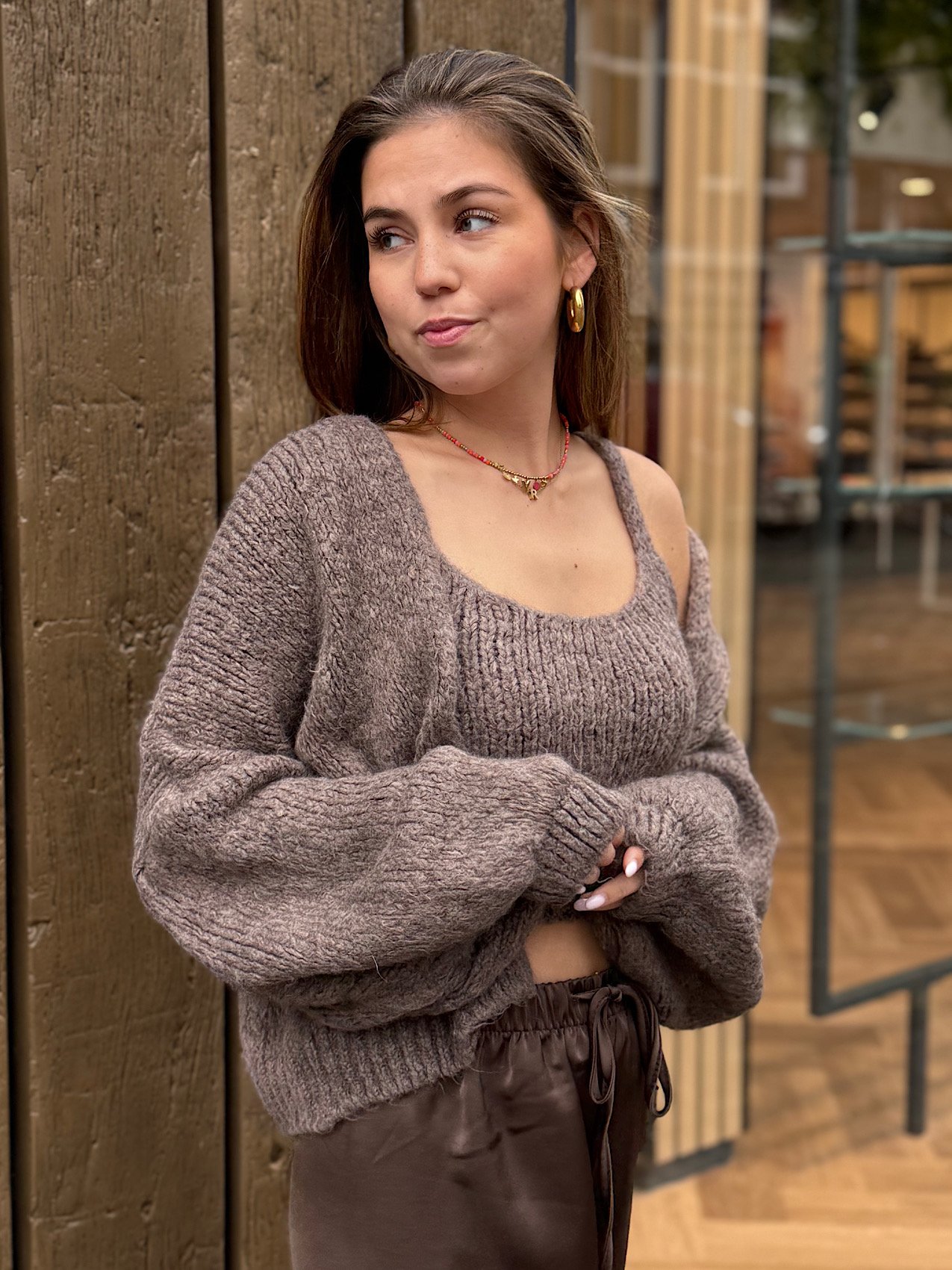 Taupe knit top en vest Ziza