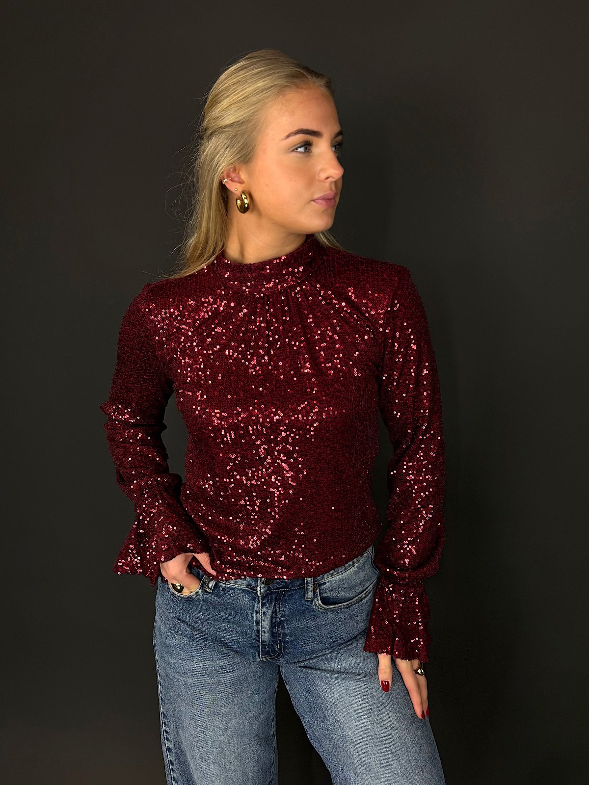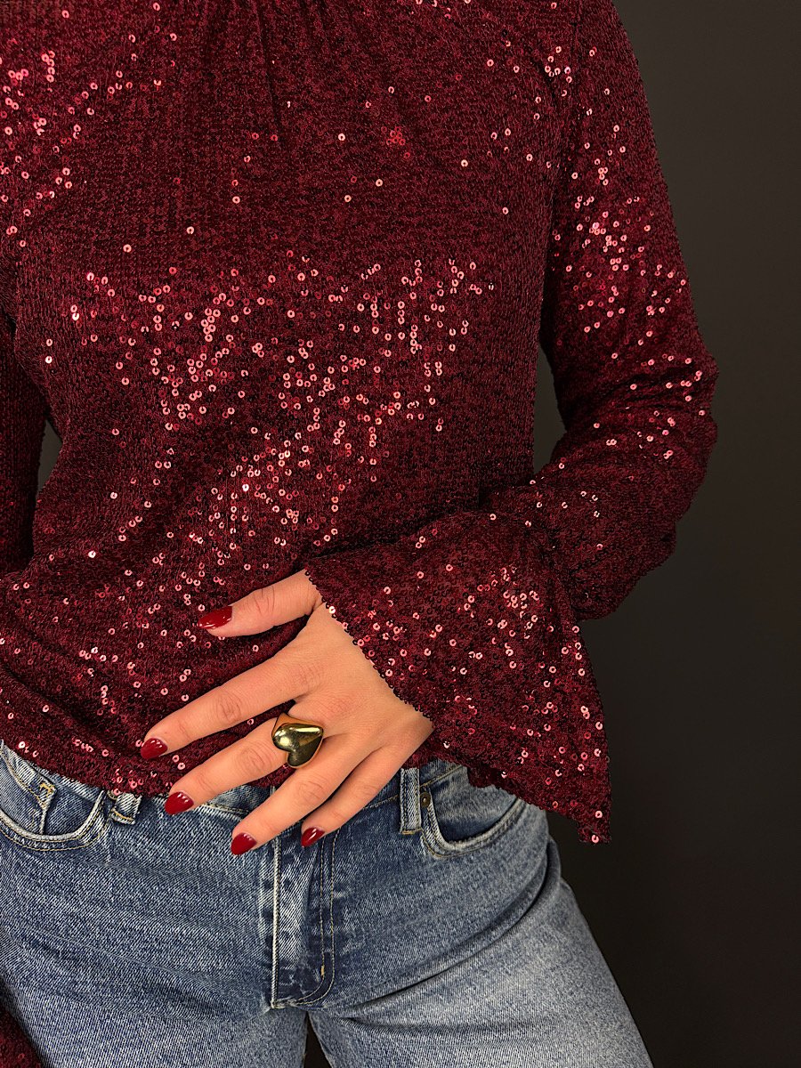 De subtiele col geeft de top een elegante uitstraling, terwijl de trompetmouwen zorgen voor een speelse, vrouwelijke touch. Dit is zo’n item dat perfect werkt voor feestjes, diners of een avond uit waar je er moeiteloos fabulous uit wilt zien.