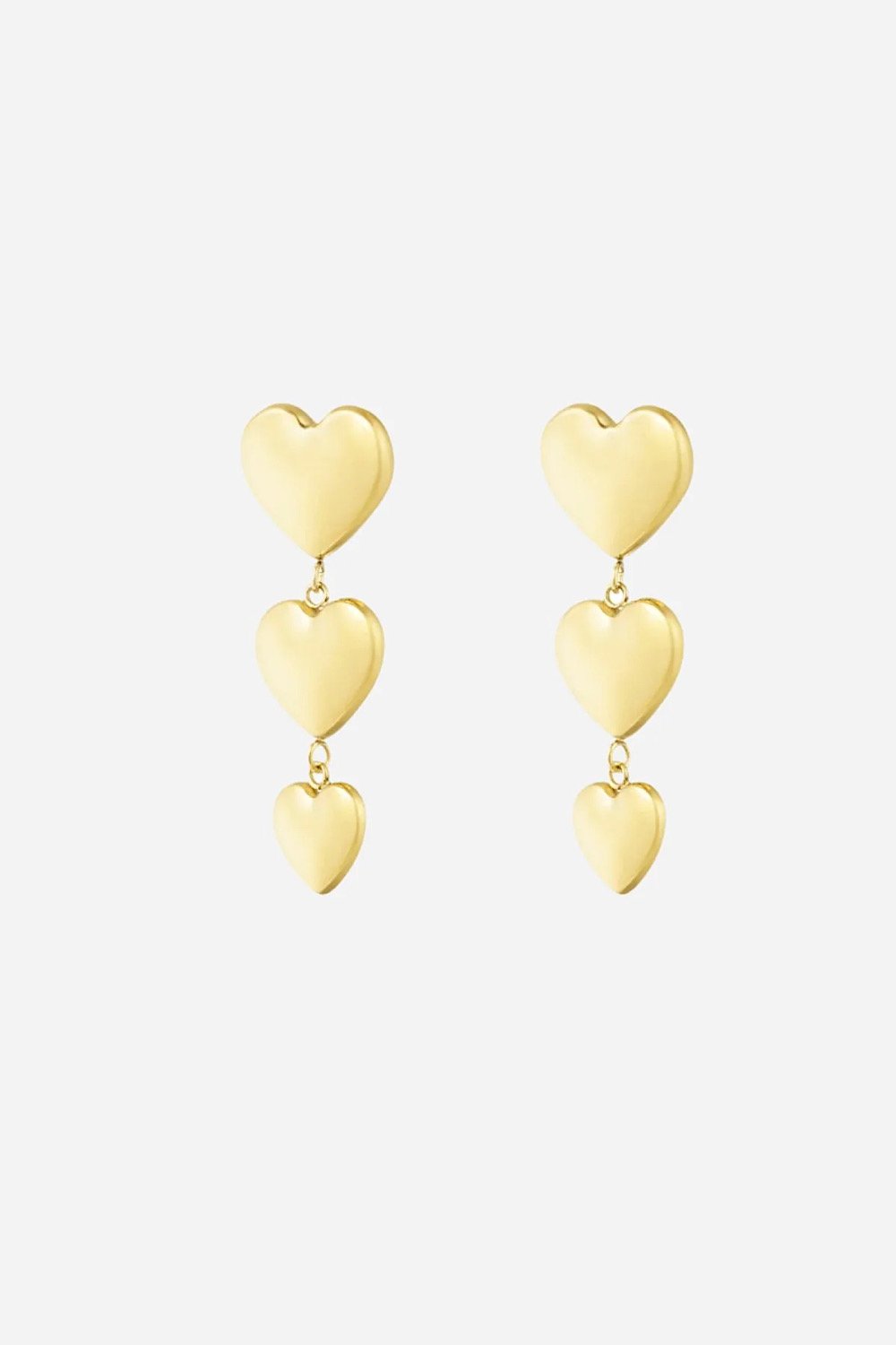 Word verliefd op de Triple Love Oorbellen! Deze oorbellen zijn versierd met drie schattige kleine hartjes. Ga je all out voor een date night of voeg je gewoon wat sparkle toe aan je outfit? Deze oorbellen laten je hart sneller kloppen! Draag ze en laat de liefde stralen.