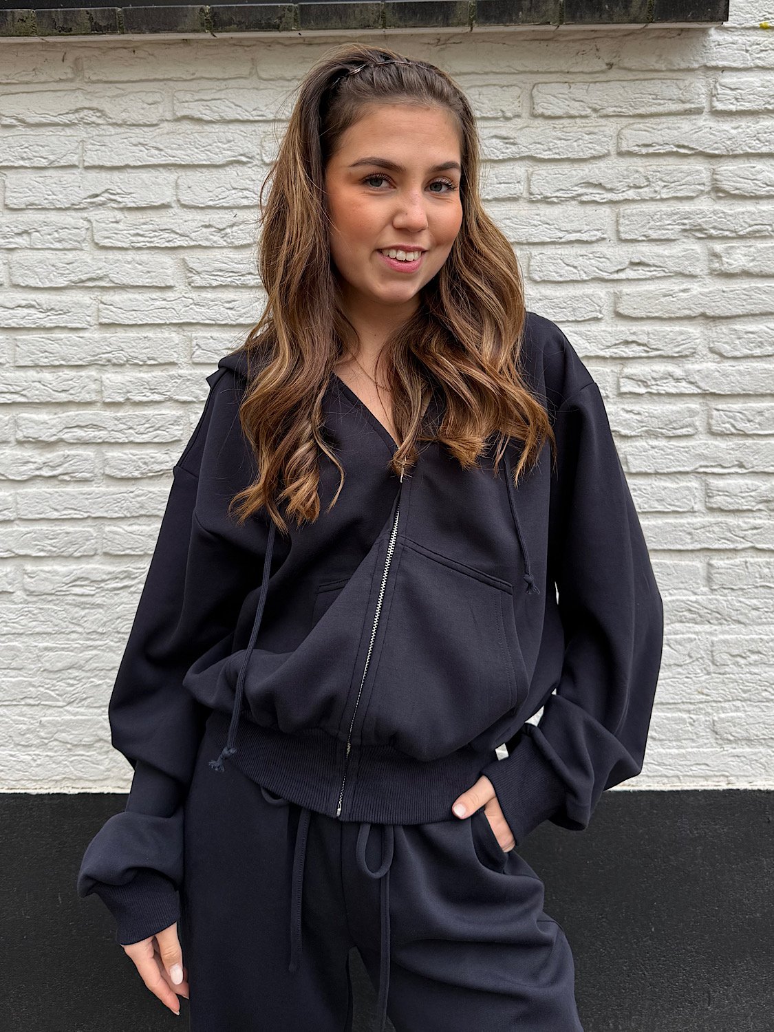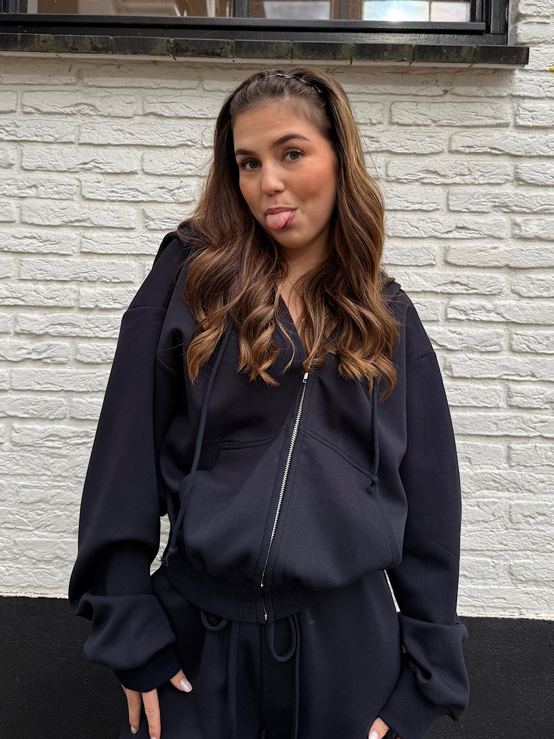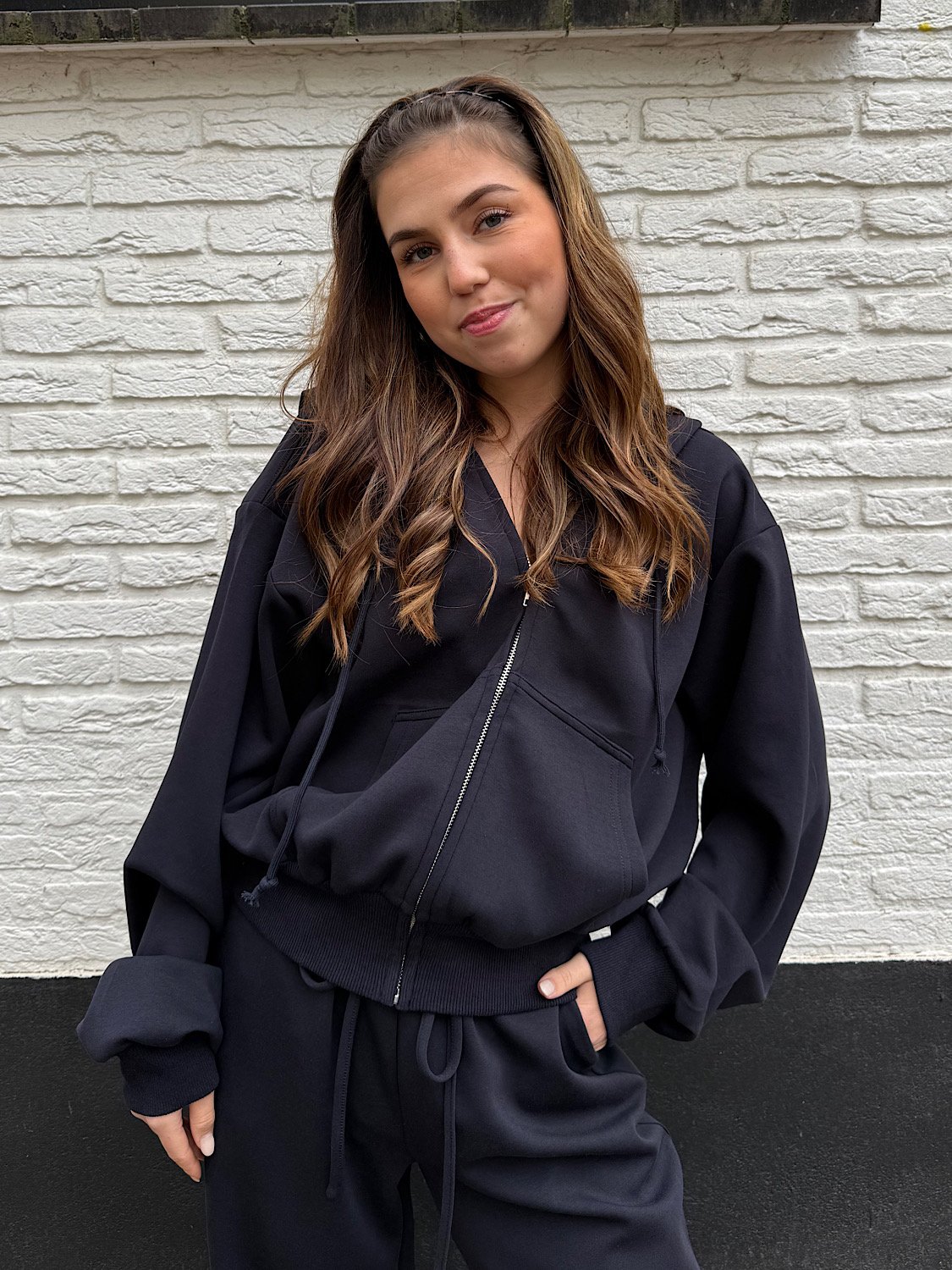 De ultieme comfy basic voor je everyday look. Deze grijze zip hoodie heeft een iets cropped lengte en een relaxed oversized fit. De zachte binnenkant maakt ‘m heerlijk warm en cozy, terwijl de hoodie en zakken zorgen voor die nonchalante streetstyle vibe.