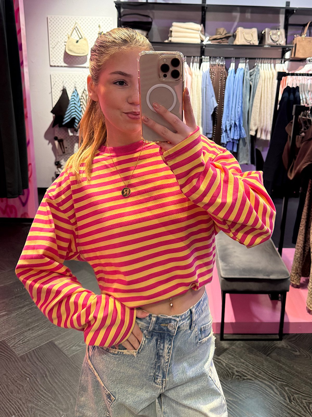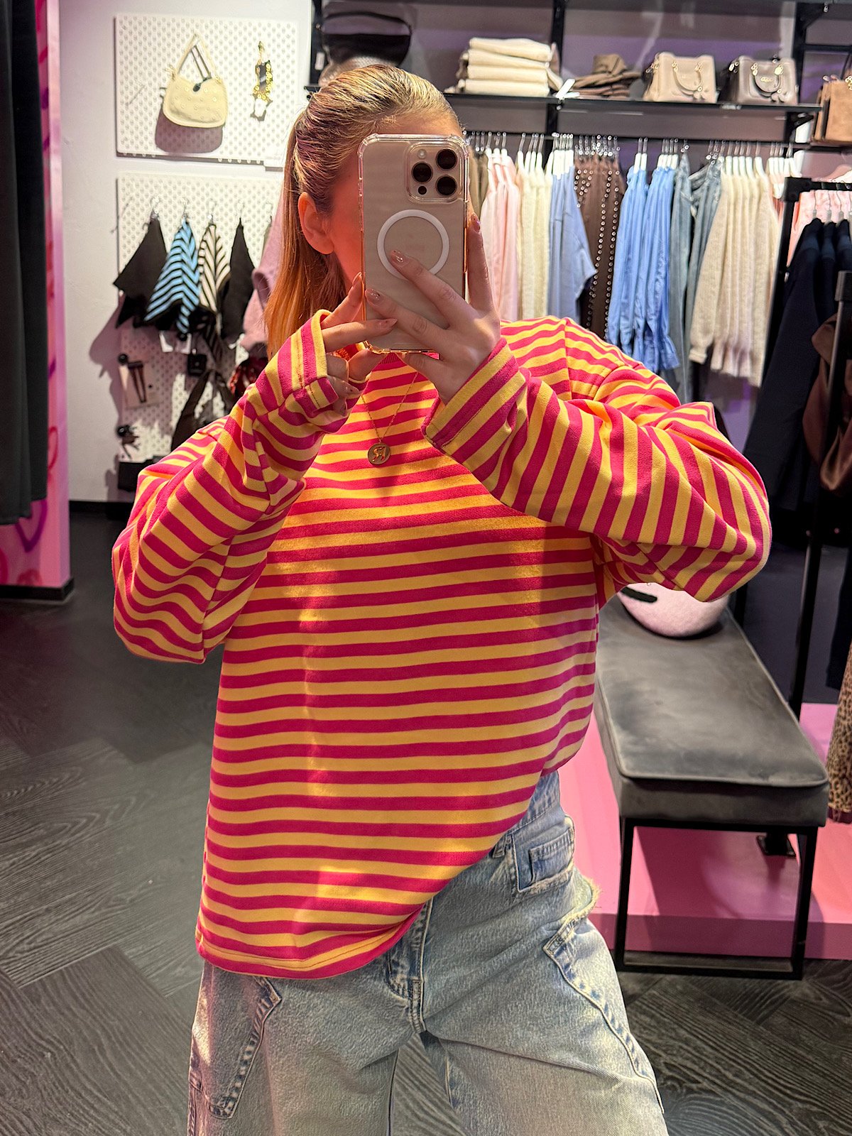 Este Streepjes Longsleeve is zo’n item dat je aantrekt en meteen snapt: oké dit is ‘m. Gemaakt van dikker katoen, dus hij voelt stevig, zacht en comfy tegelijk (niet dat dunne slappe gedoe). De streepjes geven ‘m die trend-vibe van nu: effortless, cool en toch super draagbaar.
