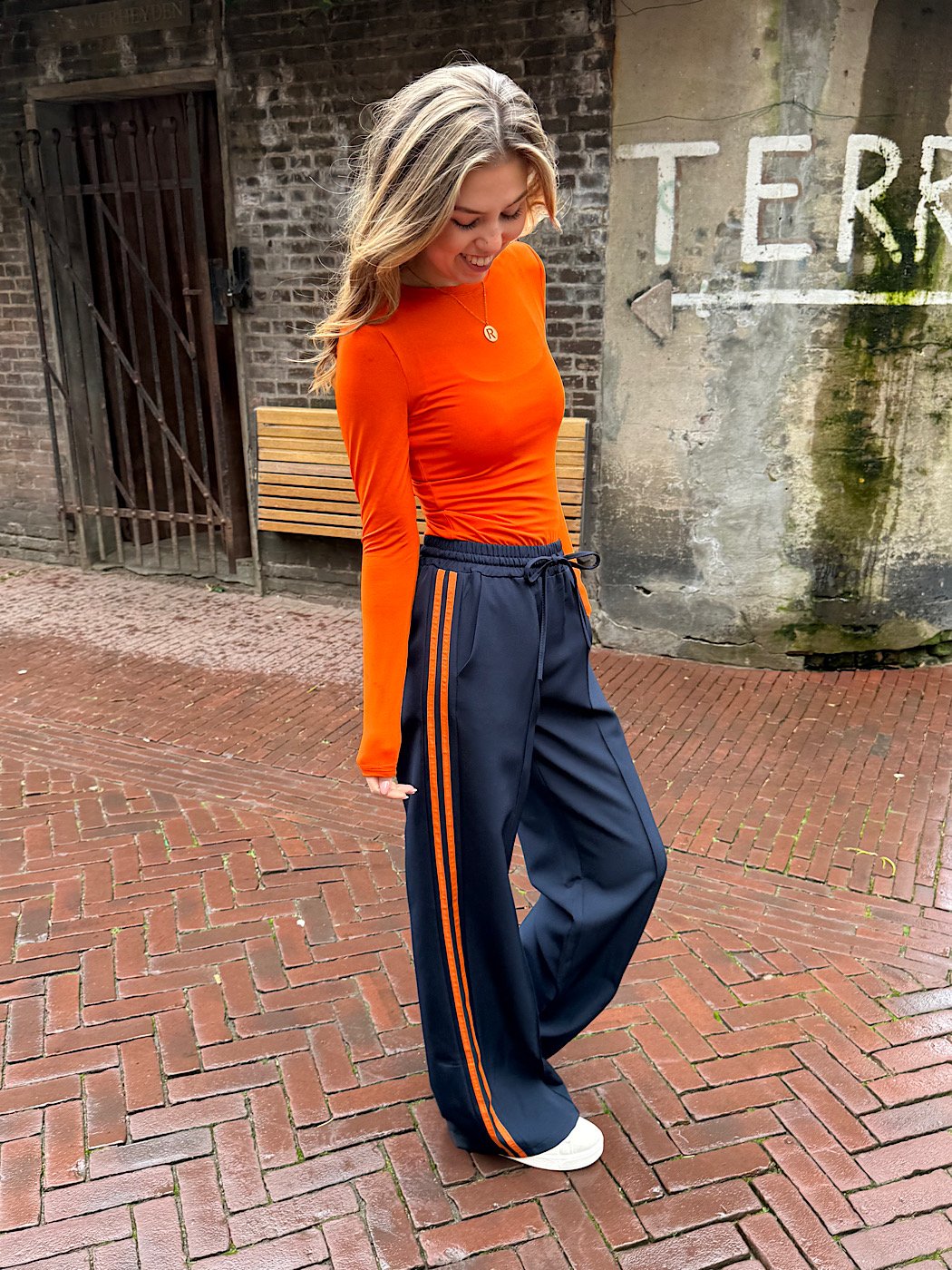 ZM – Navy wide leg met oranje strepen Novi