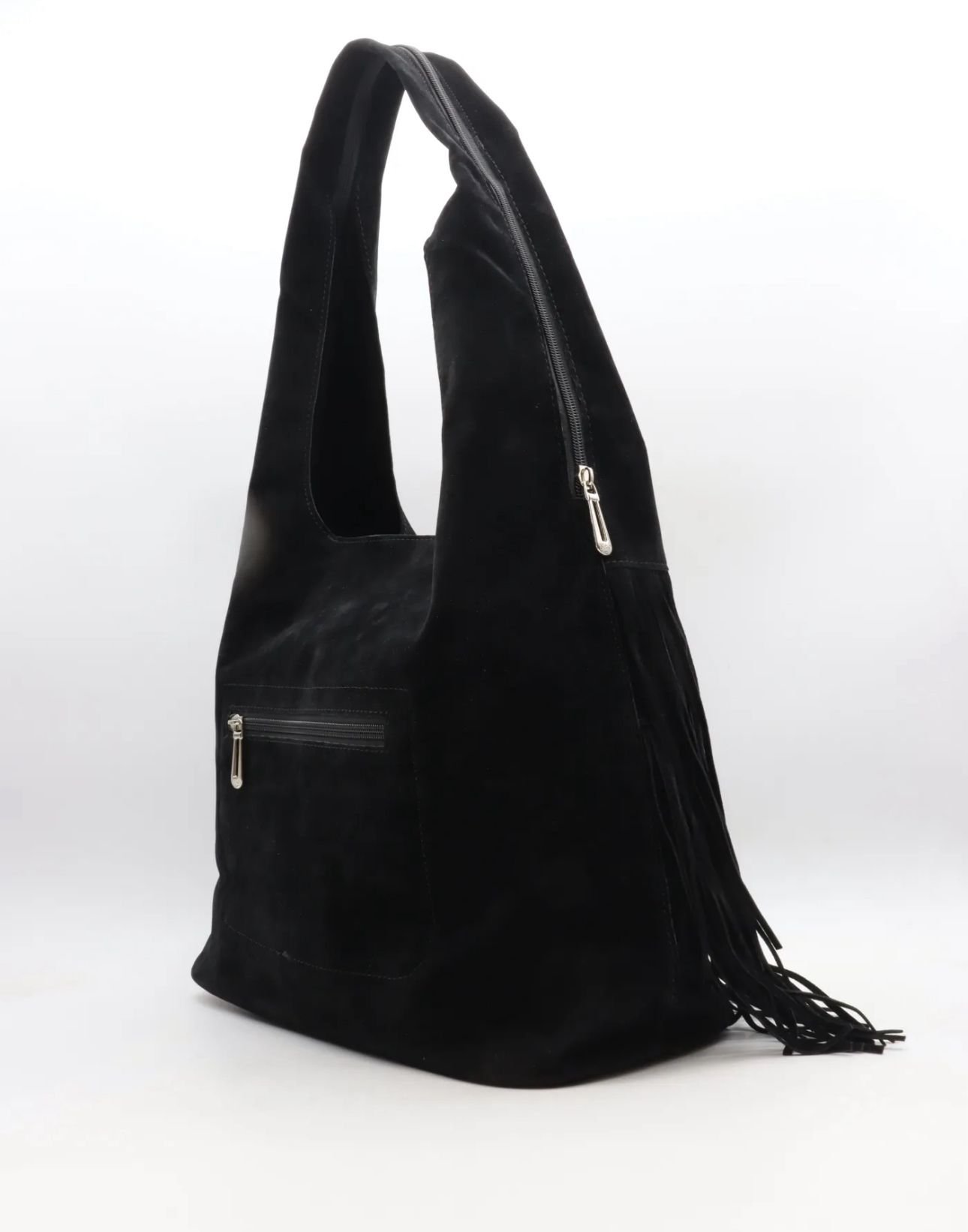 Fringe schoudertas van faux suede