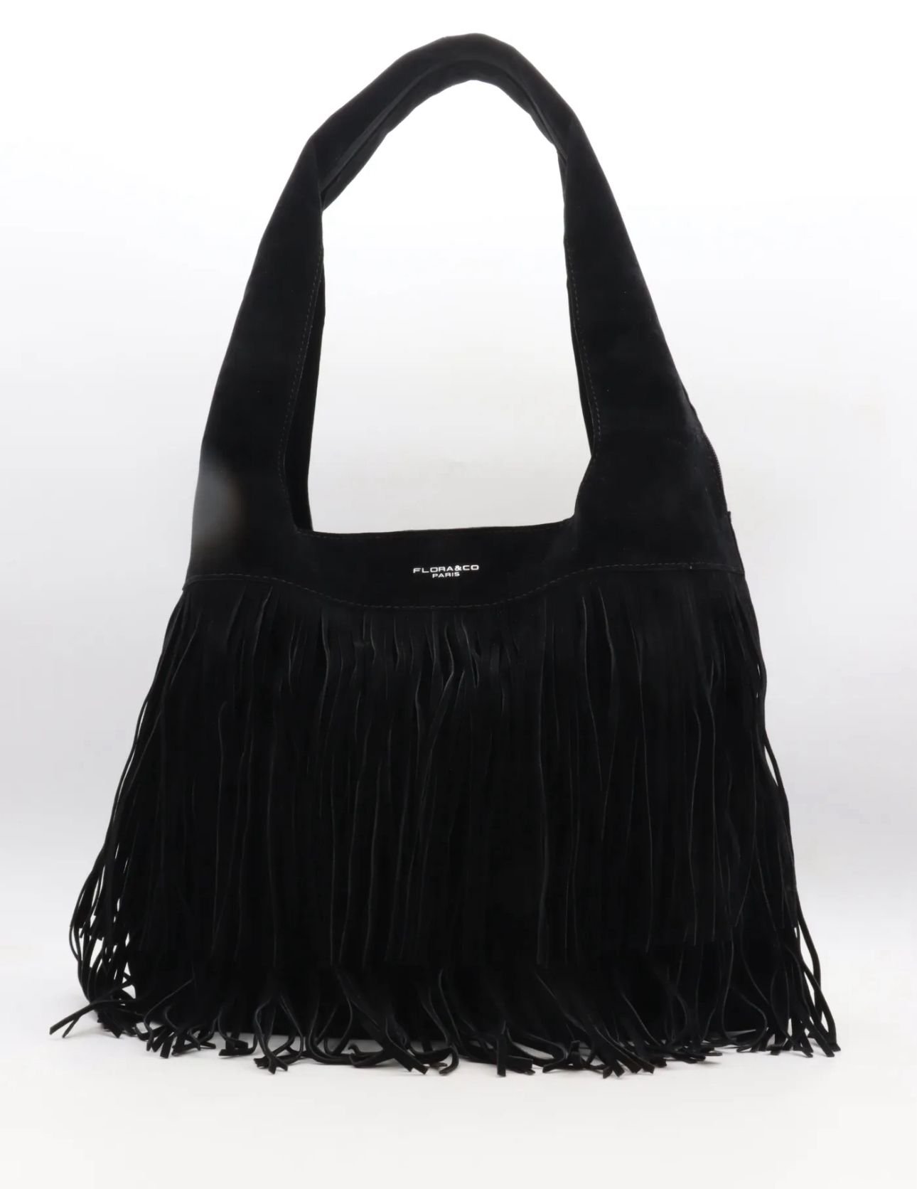 Zwarte schoudertas met fringe 7516